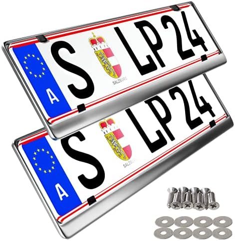 Ama L&P Set of 2 Number Plate Holders – 100% Polished Stainless Steel – Also Suitable for Curved Bumpers –