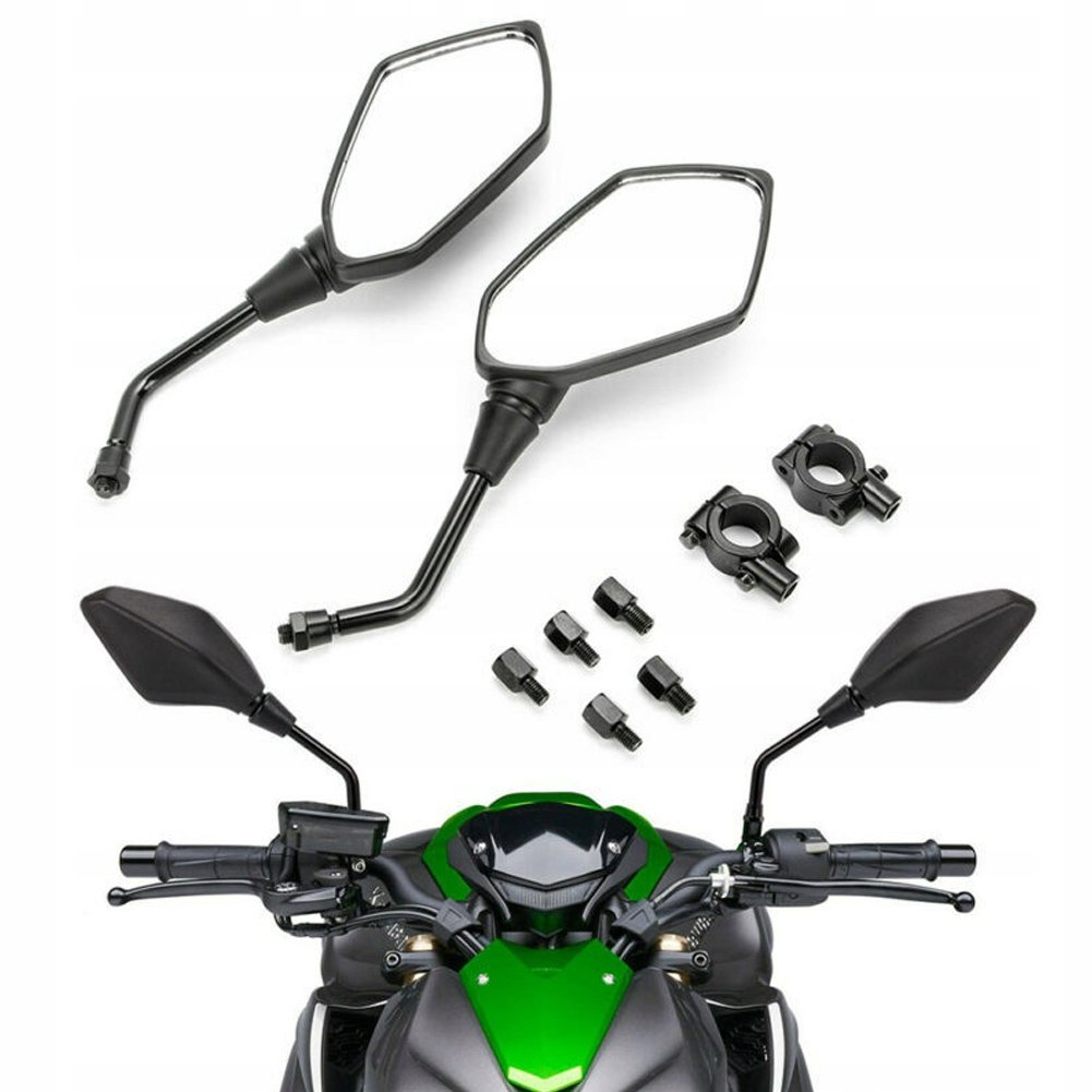 These Mirrors for Scooter, Motorcycle, and Quad are designed for optimal visibility and durability. Equipped with adjustable clamps and reductions for M8 and M10 thread sizes, these mirrors are versatile and approved for legal use, ensuring both safety and compliance with regulations.
